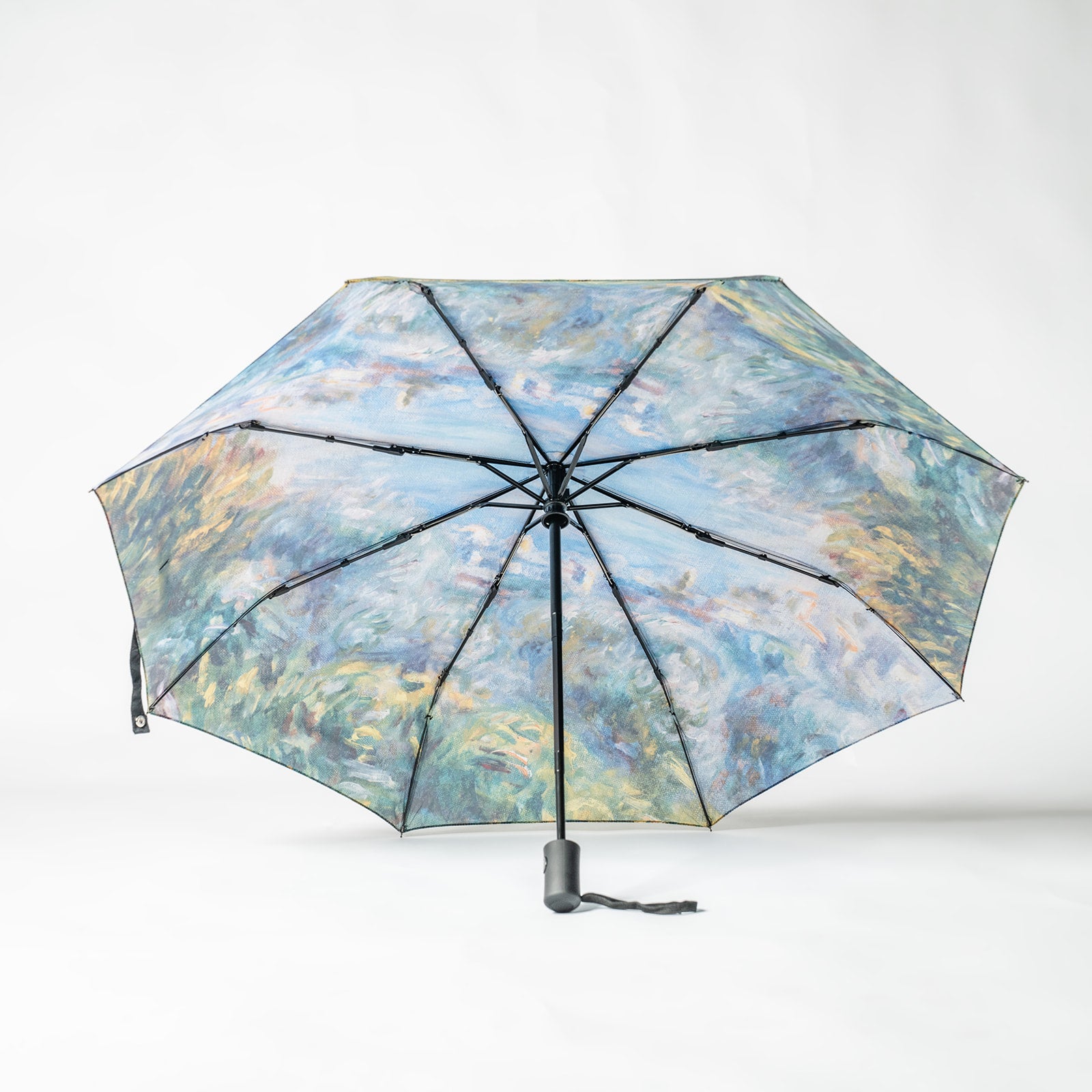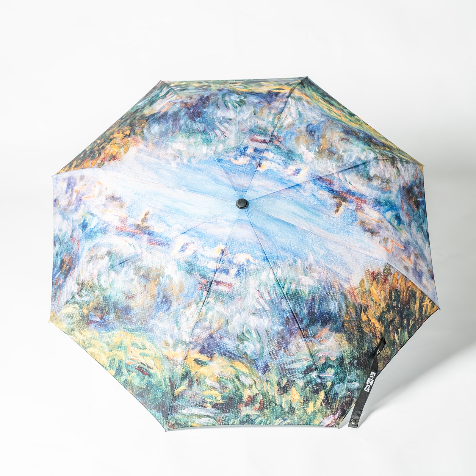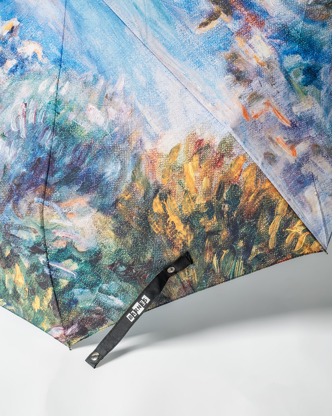 This compact umbrella features a serene detail of Renoir’s Landscape from Room 13 at the Barnes.
