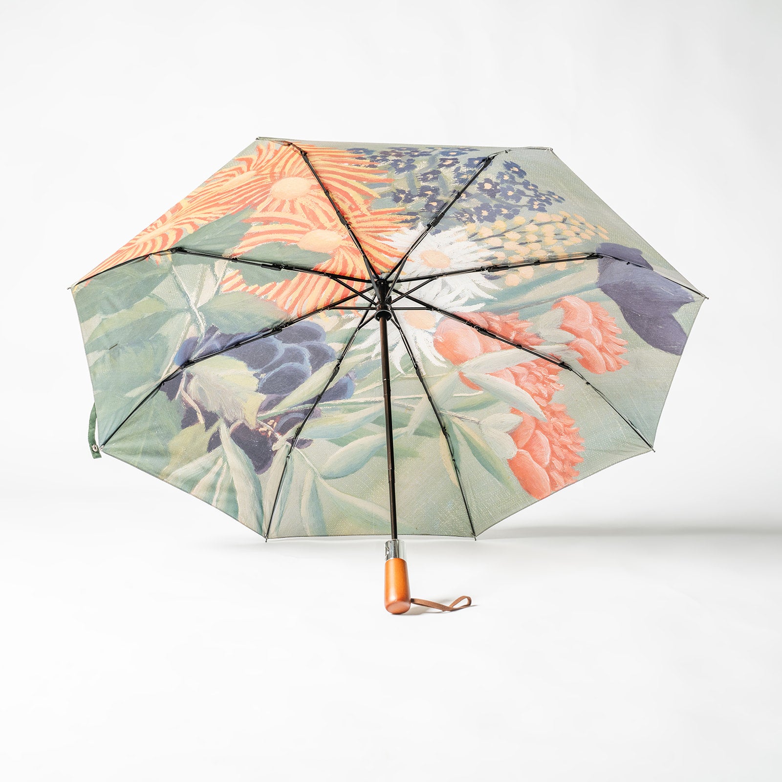 This vibrant umbrella features a lush detail of Rousseau’s Bouquet of Flowers with China Asters and Tokyos from Room 11 at the Barnes.